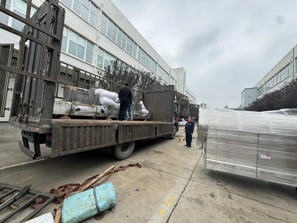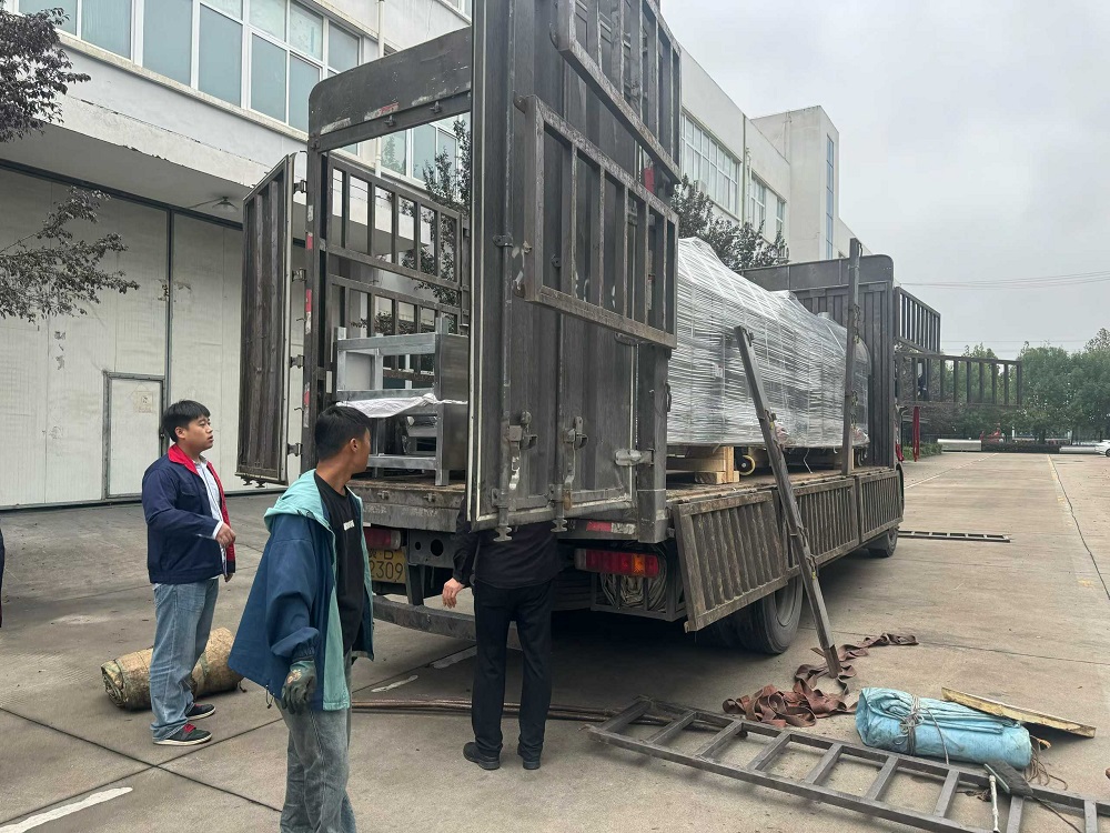 On October 10, 2025, it was raining lightly. The customer's ordered snack-making equipment had been packed up. The staff worked together to push the machines to the shipping area. Then, the forklift driver loaded the machines onto the dedicated shipping vehicle of the logistics company, completing the shipment. This assembly line vegetable stir-frying machine is used by customers in Chongqing to stir-fry chili peppers. It can stir-fry 300kg of chili peppers per hour. The entire process is fully automated and requires no manual supervision. The chili peppers produced have uniform color and good appearance. With its features of energy conservation, environmental protection, intelligence and efficiency, it is highly favored by customers in the seasoning industry.
