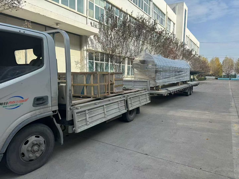 On November 11, 2025, it was another busy working day. The workshop workers were working in an orderly manner. The large-scale fully automatic assembly line for roasted snacks ordered by the customer from Chike Machinery had gone through the processes of manufacturing, testing, packaging, etc. With the help of the forklift driver, it was loaded onto the shipping special vehicle of the logistics company and completed the delivery.