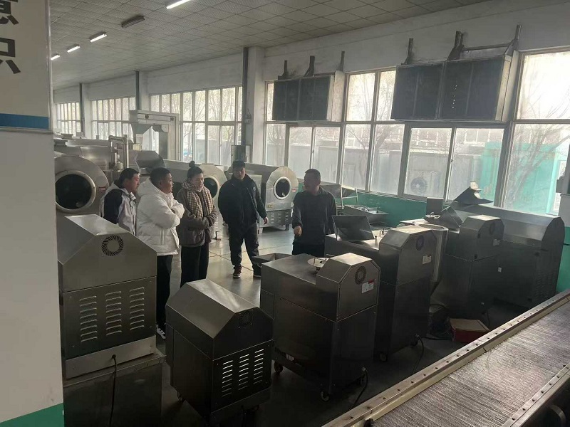 On December 18, 2025, the weather was clear and sunny. The customer from Shangqiu drove to Chike Machinery, visited the factory, the manufacturer and the equipment facilities, learned about the production process of the equipment, and tested the small electromagnetic food roasting machine. The business manager skillfully adjusted the machine to start roasting peanuts, while explaining the precautions for roasting to the customer. In no time, a pot of peanuts was already roasted to a crispy and delicious state. As the customer tasted the fried peanuts, he kept praising our peanut roasting machine.
