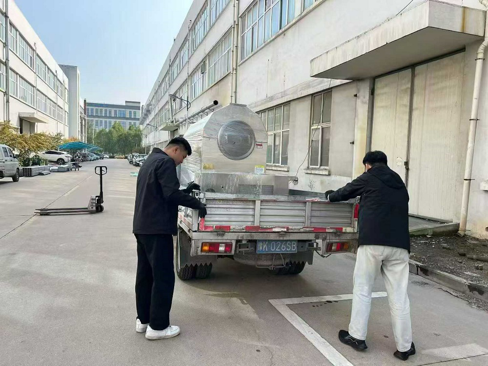 On October 22, 2025, a clear sky always brings people a good mood. The electromagnetic snack-making machine ordered by the customer in Zhengzhou was completed for delivery, tested, and packaged. With the help of the forklift driver, it was loaded onto the shipping vehicle of the logistics company and finally delivered. This model can cook 50 kilograms of materials in one pot. It is environmentally friendly, energy-saving, hygienic and efficient. It heats up quickly, heats evenly, has intelligent temperature control, saves time, effort and manpower, and is suitable for various cooking modes. It has been recognized and praised by the industry insiders of dried fruit and nut products.